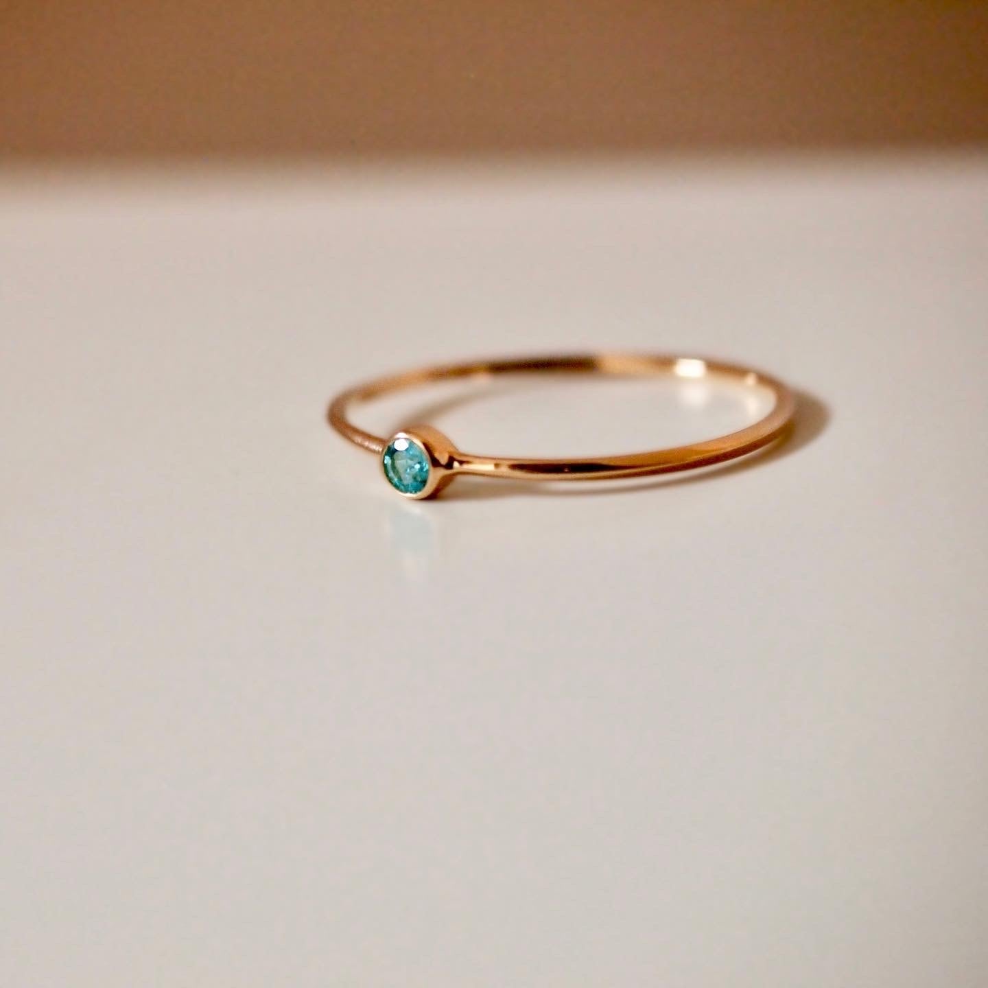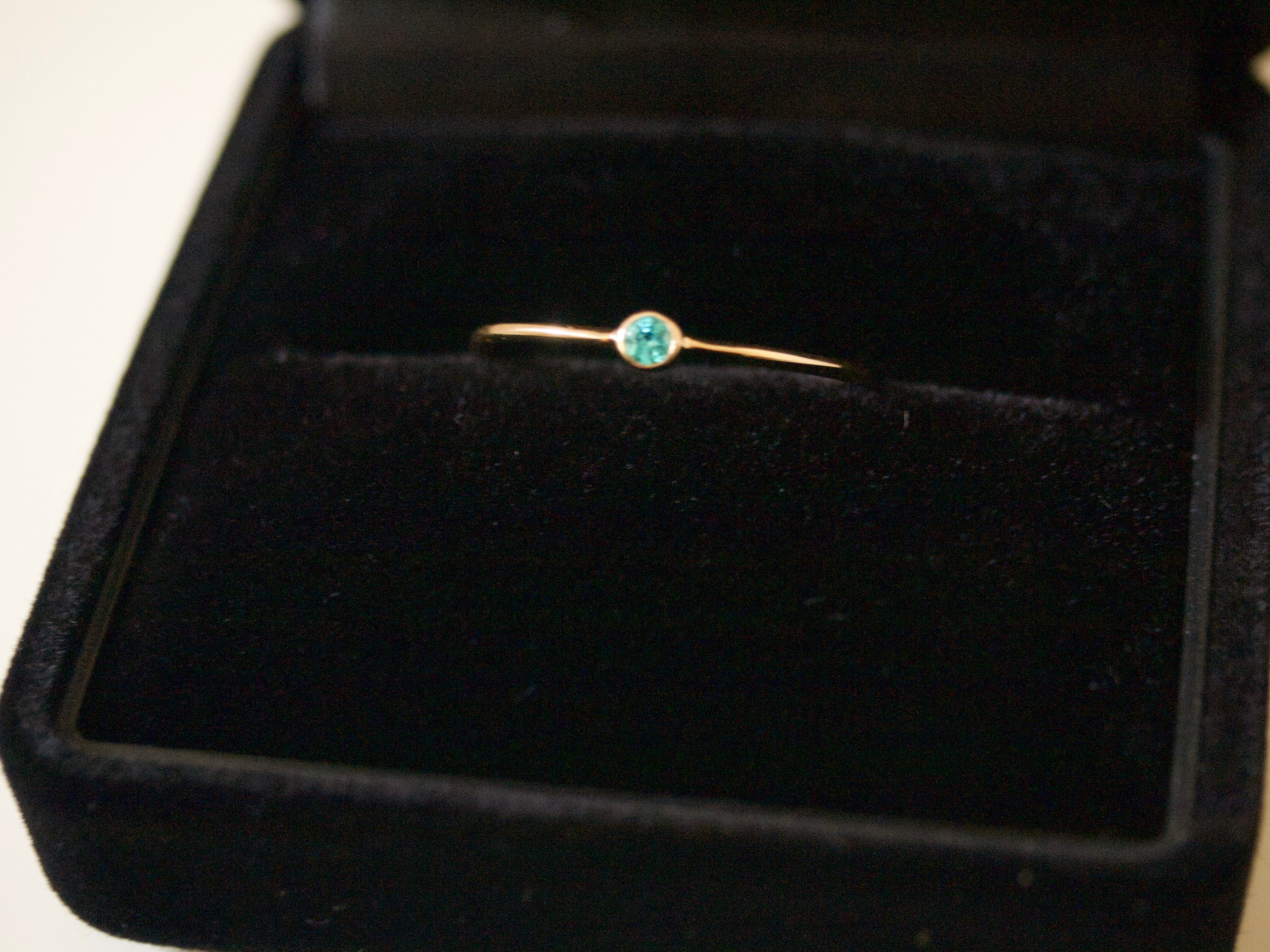 ただの一粒リングとは一味違う、美しいフォルムの細いリングで、ジュエリー業界50年以上の大先輩方にお見せしてもこれはよくできていると驚いてもらえました。パライバもきれいだねーと感心していただけています。自信作です。